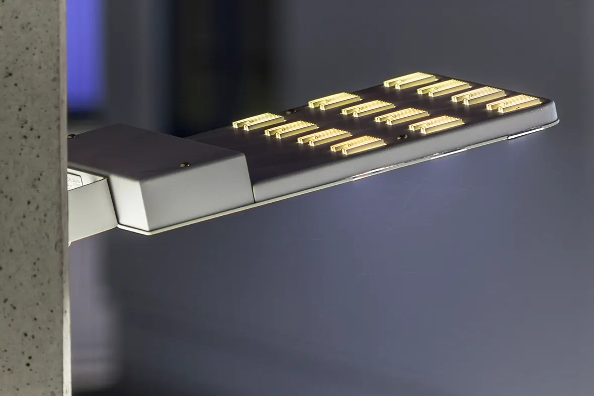 Trotz niedriger Lichtpunkthöhe der Pollerleuchten von ca. 1 Meter erreichen wir ein angenehm gleichmäßiges Lichtbild. Im gleichen Bauabschnitt wurden die Straßen rund um den Kurpark, die Zufahrt zur attraktiven Thermenlandschaft und ein neu geschaffener Wohnmobil-Stellplatz mit der VINEA ausgerüstet. Insgesamt mehr als 200 Lichtpunkte lassen damit den Bereich Kurpark mit Therme abends und nachts in neuem Glanz erscheinen.